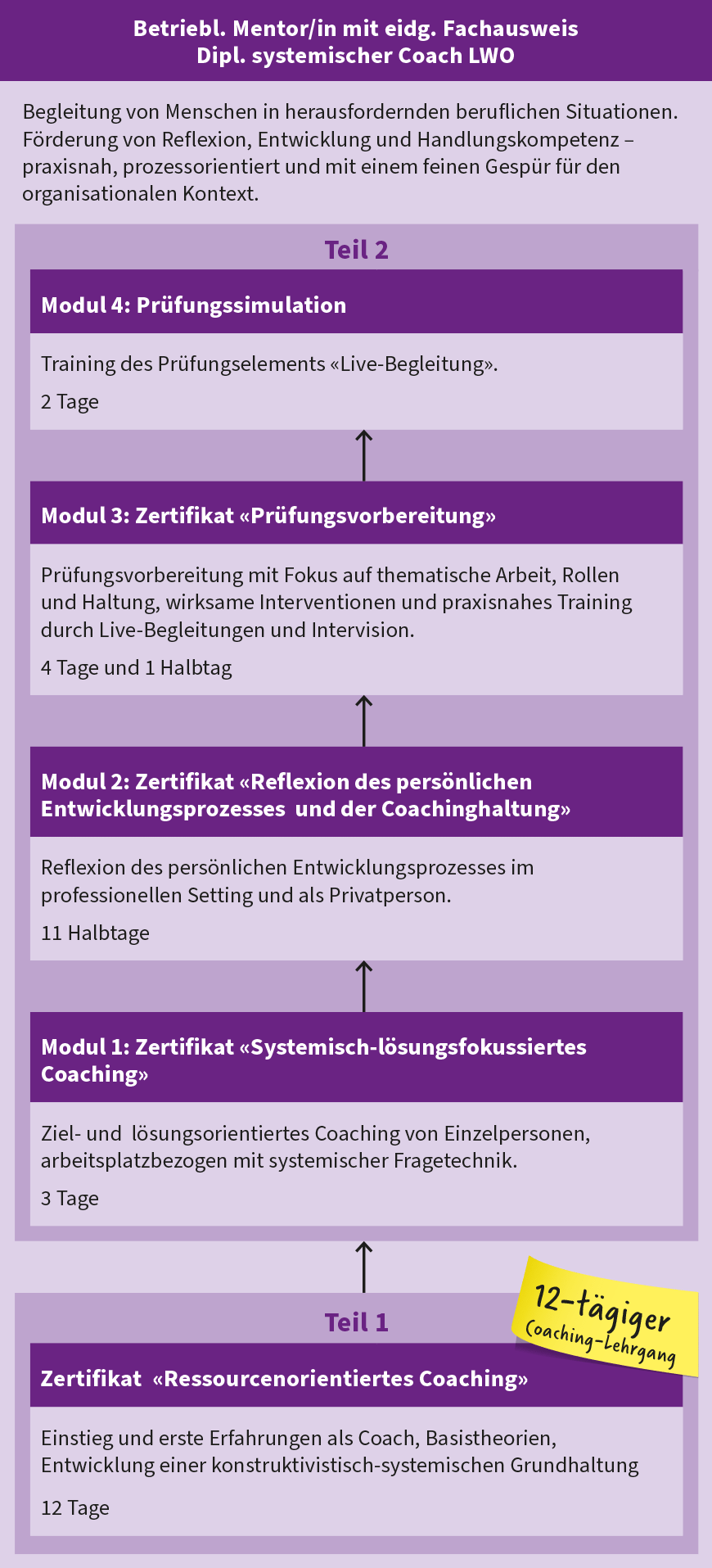 - Diplom als systemischer Coach LWO auch ohne Teilnahme an der Berufsprüfung Betriebl. Mentor/in