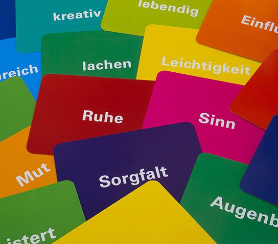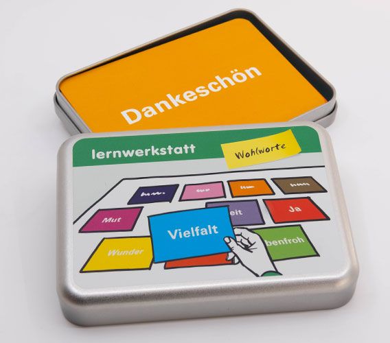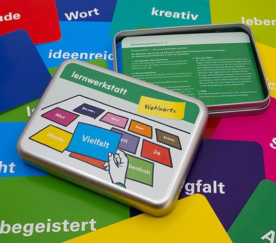 Sie erhalten 40 Karten mit positiv besetzten Begriffen und 10 Anwendungsideen in einer praktischen Aludose. Die Karten setzen Sie in Ihrem Seminar als Ein- oder Ausstieg, als Auflockerung zwischendurch oder als Vertiefung ein.